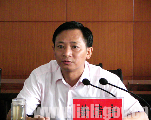 (县委书记黄清宇指出县委、县政府上半年工作有合力、有特色、有亮点。)
